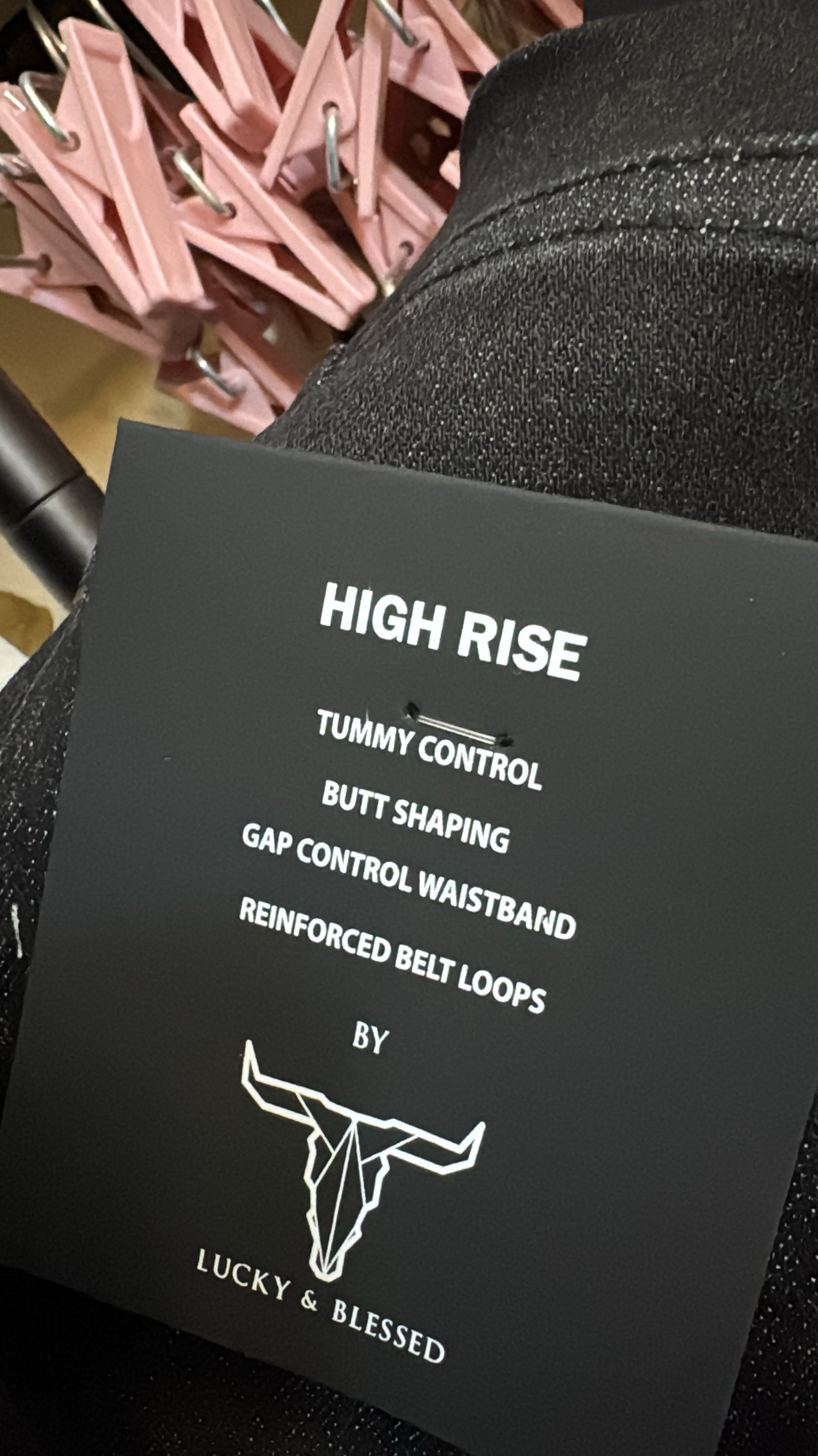 Elevate your denim game with these high-rise black boot stitch bootcut jeans from Lucky & Blessed, crafted exclusively for the modern cowgirl. Featuring bold Western-inspired curved studded detailing along the hips and outer legs, these jeans strike the perfect balance between edgy and elegant. The clean back pockets keep the silhouette sleek, while the flared leg cut adds a classic rodeo-ready finish. Designed with stretch denim for all-day comfort and a flattering fit, these jeans are ideal for pairing with embroidered blouses, fringe tops, or your favorite boots. A must-have piece for Western women’s wholesale buyers looking to stand out this season.