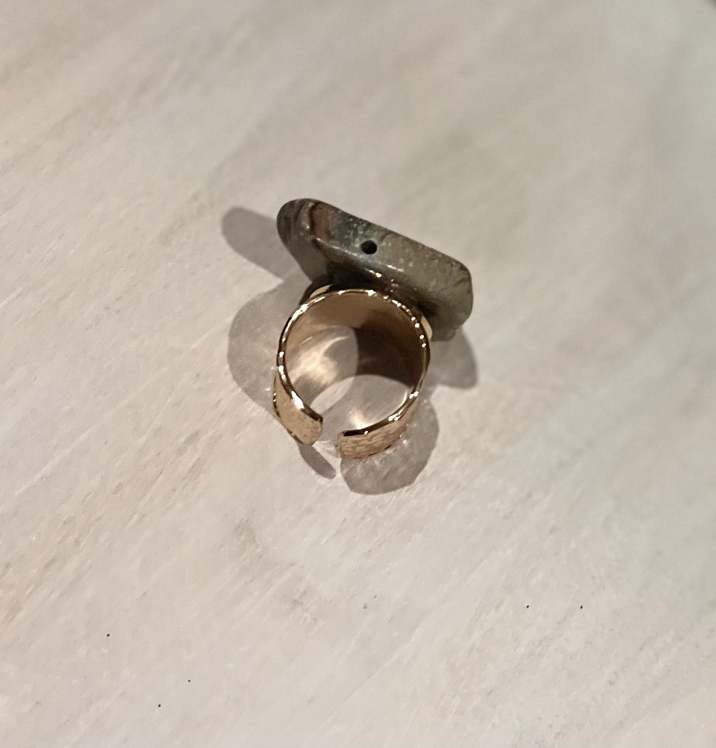 Chunky Aqua Terra Slab on Hammered Cuff Ring Base