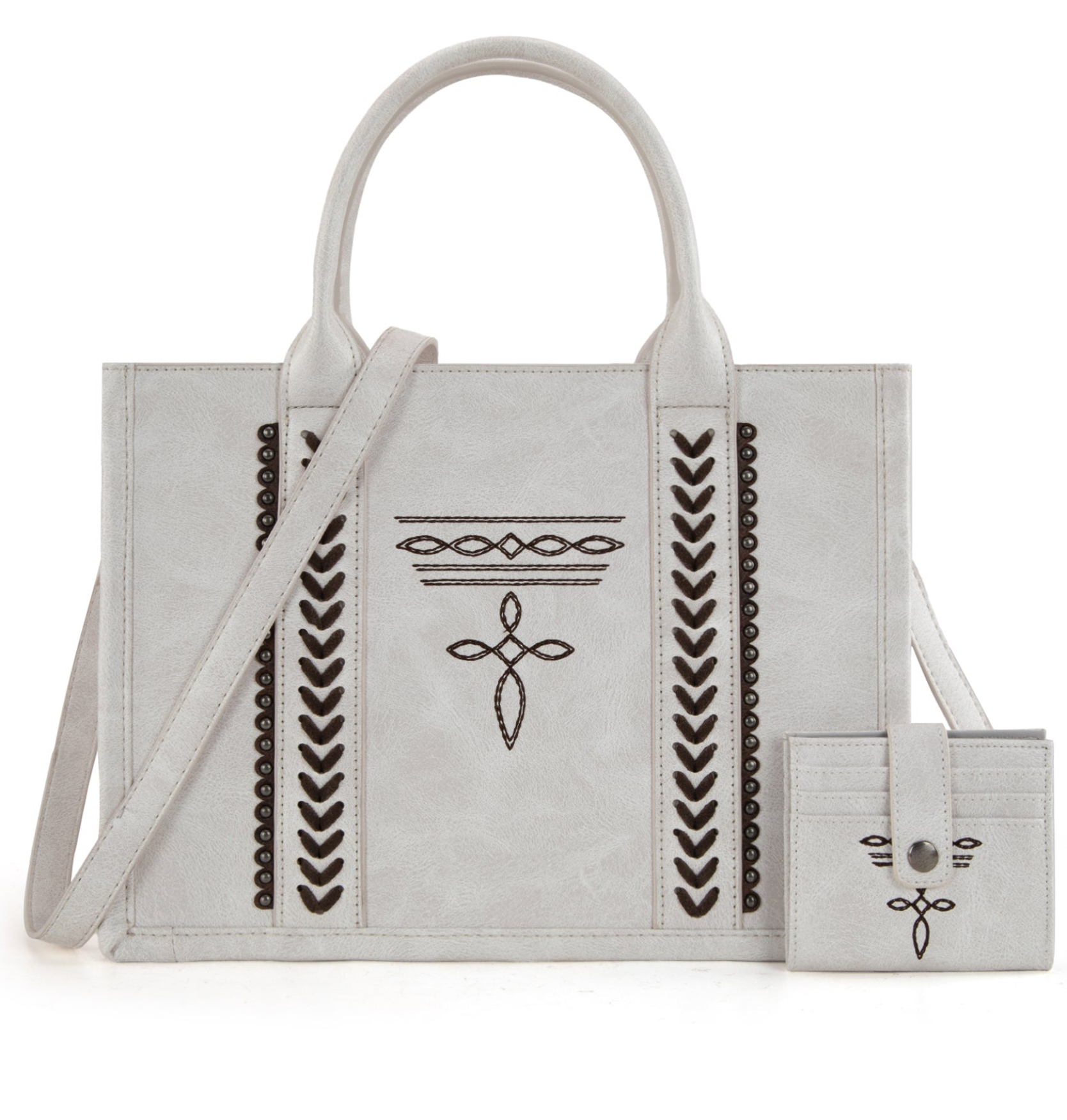 - Accented with antique silver studs